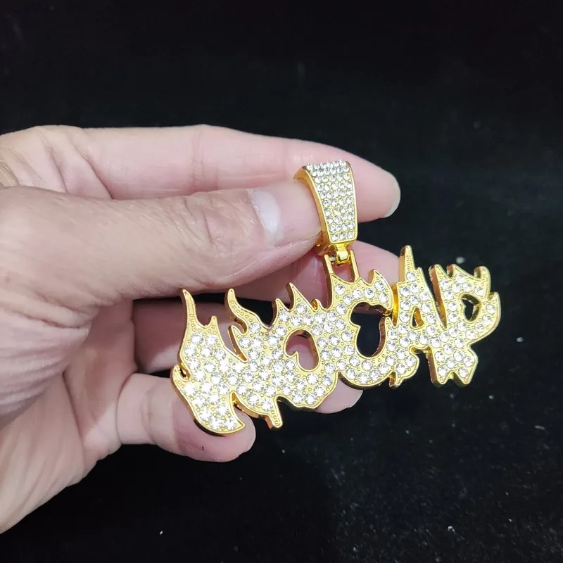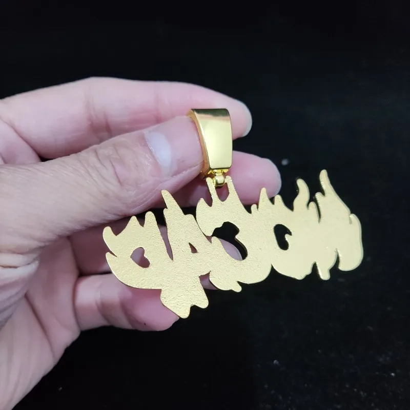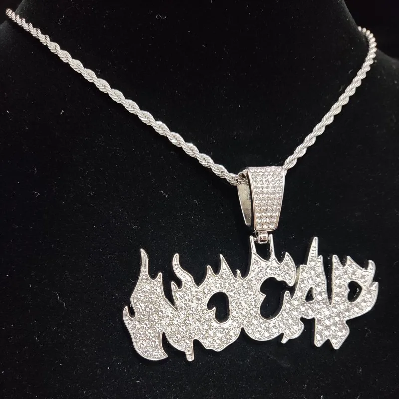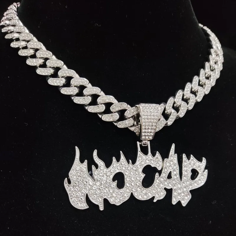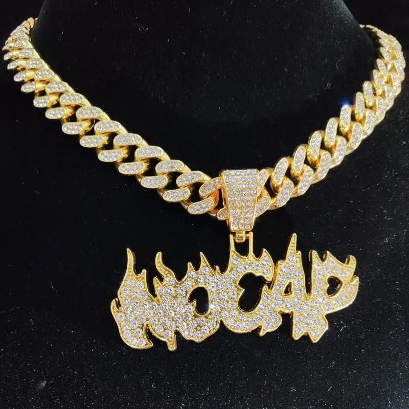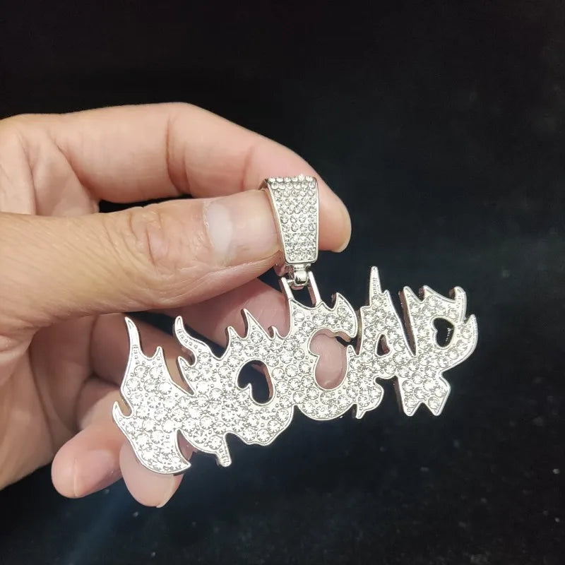 New Men Women Hip Hop Flame Letters Iced Out Pendant Necklaces with 13mm Cuban Chain HipHop Necklace Fashion Charm Jewelry
